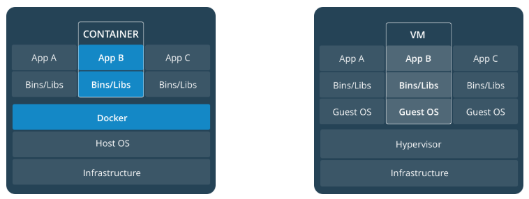 容器在Linux上本地运行,并与其他容器共享主机的内核。它运行一个离散进程,不占用任何其他可执行文件更多的内存,从而使其轻巧。相比之下,虚拟机(VM)运行成熟的“guest”操作系统,并通过虚拟机管理程序对主机资源进行虚拟访问。通常,VM会产生大量开销,超出了应用程序逻辑所消耗的开销。它两的区别如下: