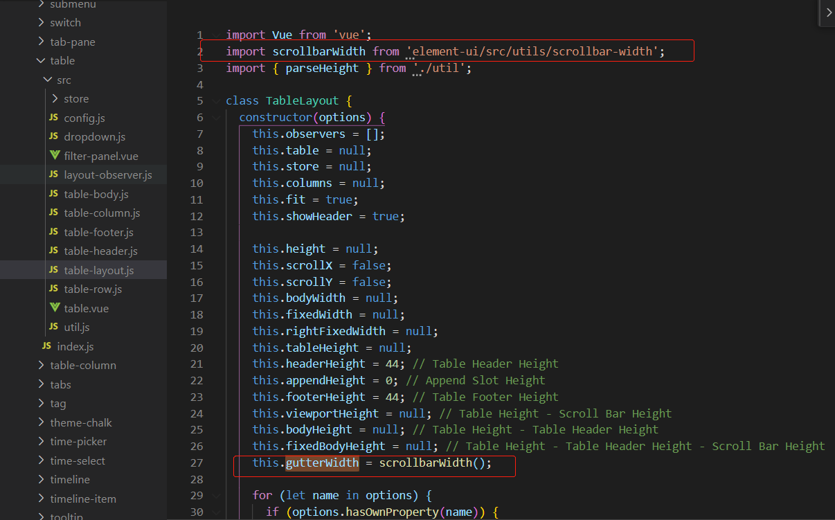 看元素发现el-table__fixed-right样式是滚动设置的,决定从源码入手,看看el-table是怎么计算的。