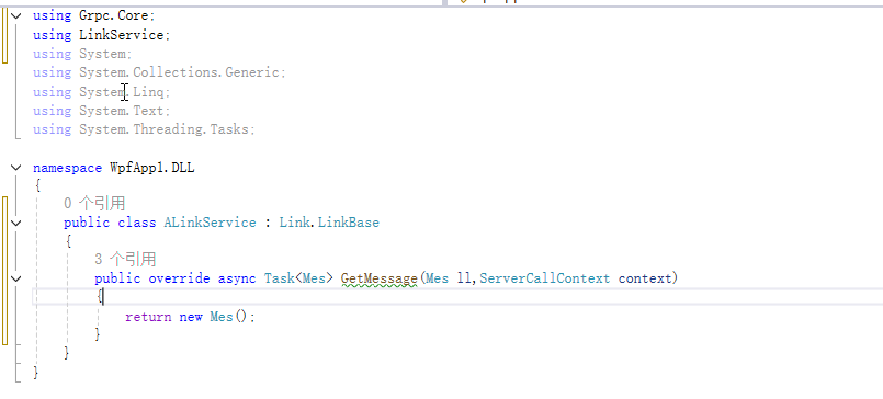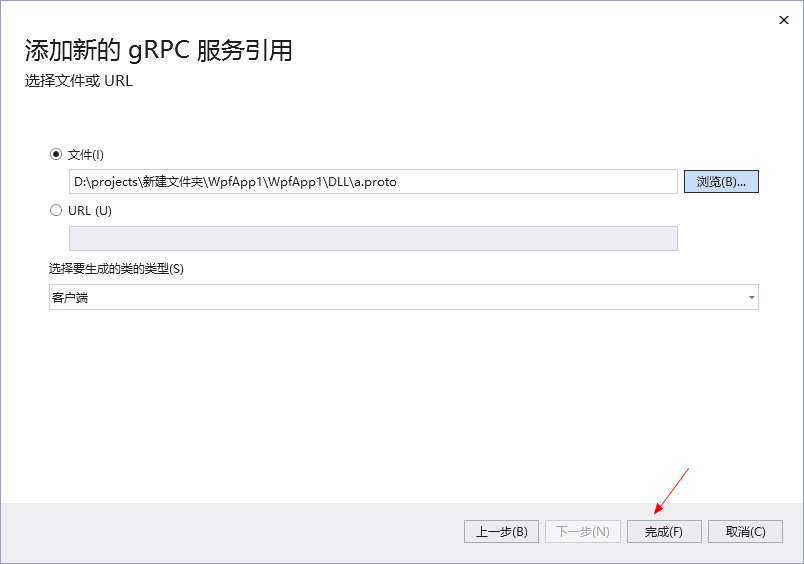 客户端我们只要引用照上面引用grpc服务 选择这个proto文件就能实现客户端与服务端grpc通讯了