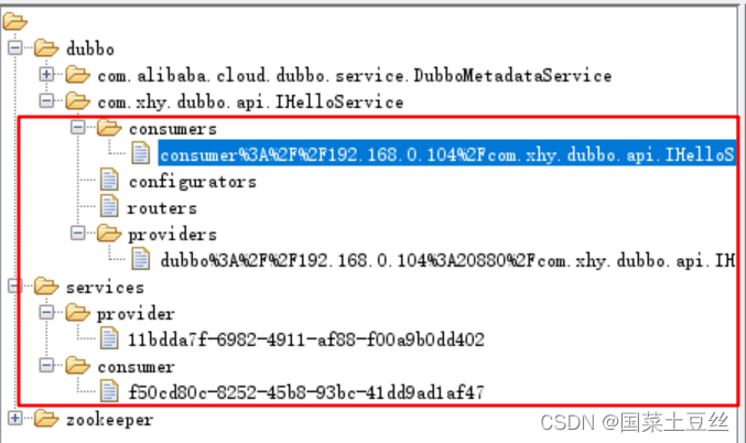 /dubbo/com.xhy.dubbo.api.IHelloService/providers 目录下创建当前服务的URL,其中com.xhy.dubbo.api.IHelloService是发布服务的接口全路径名称,providers表示服务提供者的类型,dubbo://ip:port表示该服务发布的协议类型及访问地址。其中,URL是临时节点,其他皆为持久化节点。在这里使用临时节点的好处在于,如果注册该节点的服务器下线了,那么这个服务器的URL地址就会从ZooKeeper服务器上被移除。