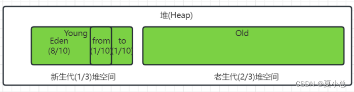 默认-XX:NewRatio=2, 表示新生代占1, 老年代占2, 新生代占整个堆的1/3