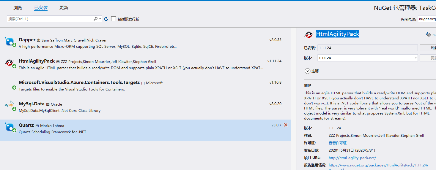 3、然后我们要使用一个神器进行html分析了。HtmlAgilityPack 它可以解析我们获取的html字符串代码