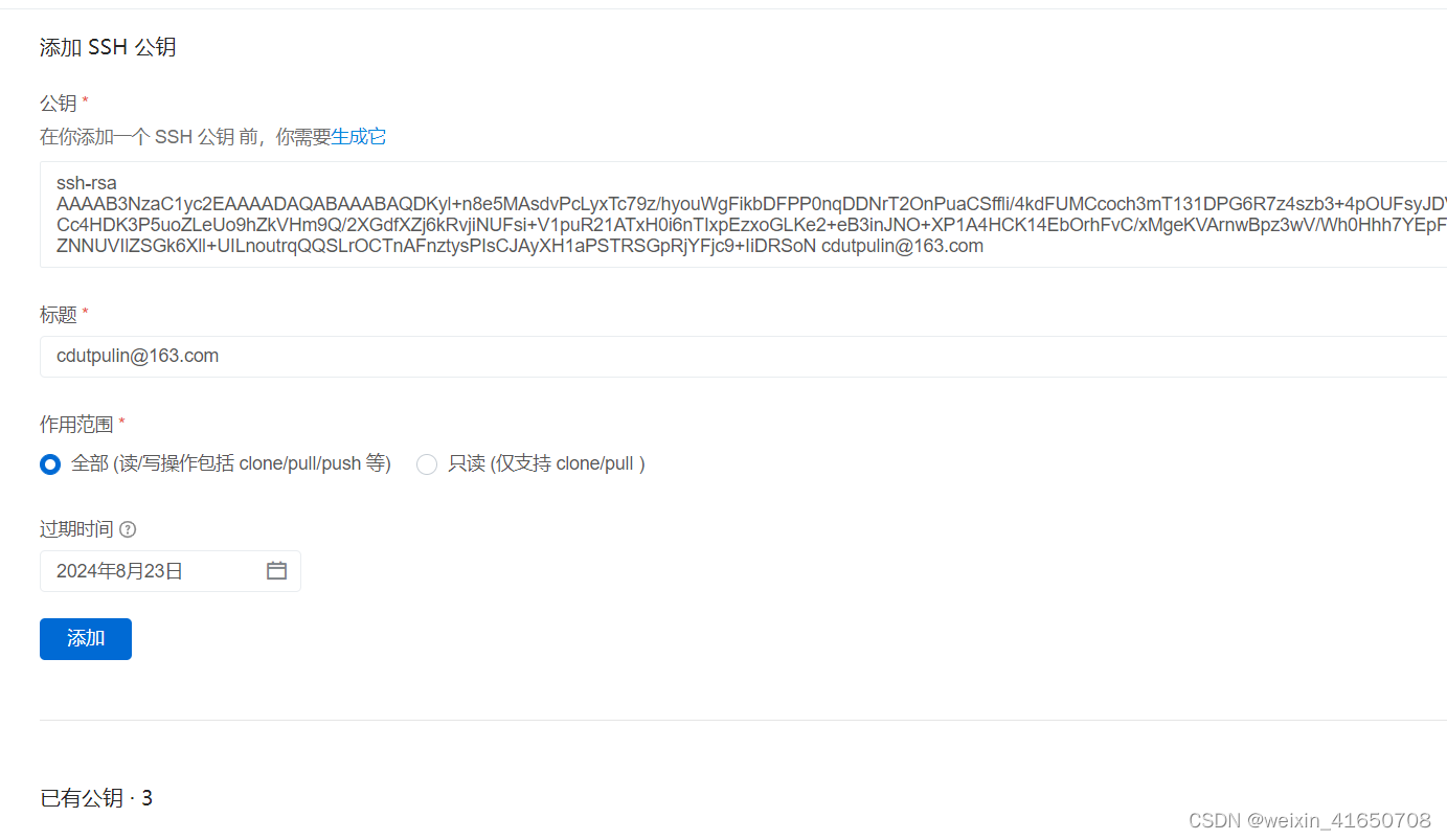 #如果存在多个客户端。公钥信息每行一个