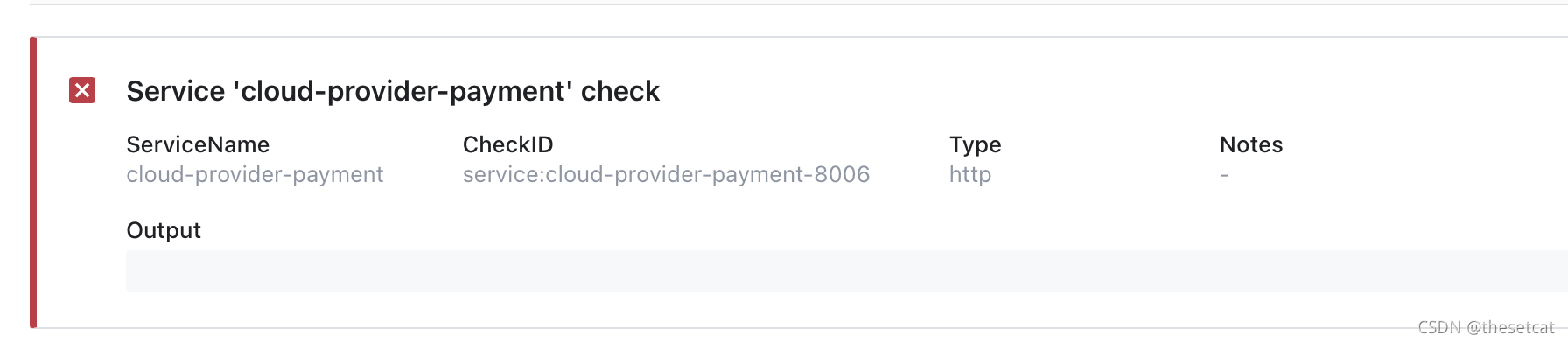 尝试了几次解决,发现在consul的web页面实例详情页output提示连接ip:port超时