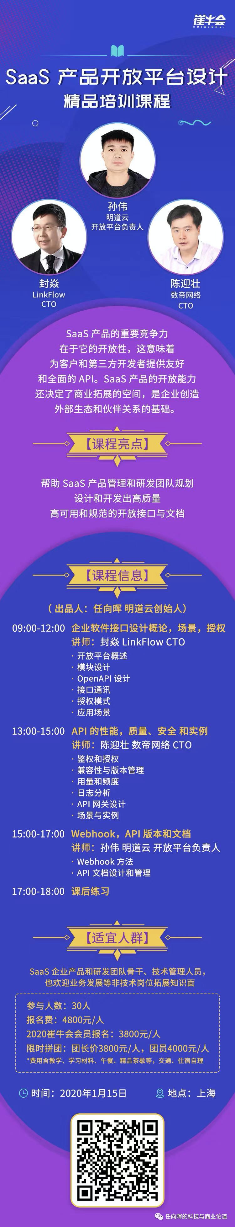 拖个广告。不管什么生态模式,SaaS产品本身自己要开放。如何设计一个方便客户和第三方应用集成的开放平台成了SaaS产品竞争力的分水岭。我和崔牛会联合制作了一个《SaaS产品开放平台设计》课程,由来自LinkFLow,数帝网络和明道云的三位技术管理人员主讲。明年1月15日在上海开课,价格实惠,收益巨大。欢迎SaaS企业派产品技术大将前来学习交流。