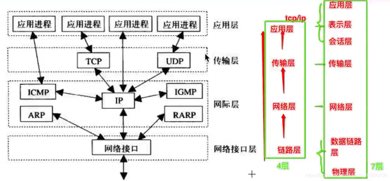 OSI七层模型对应TCP/IP四层协议及其具体协议名对比