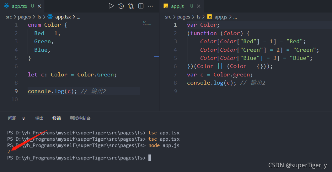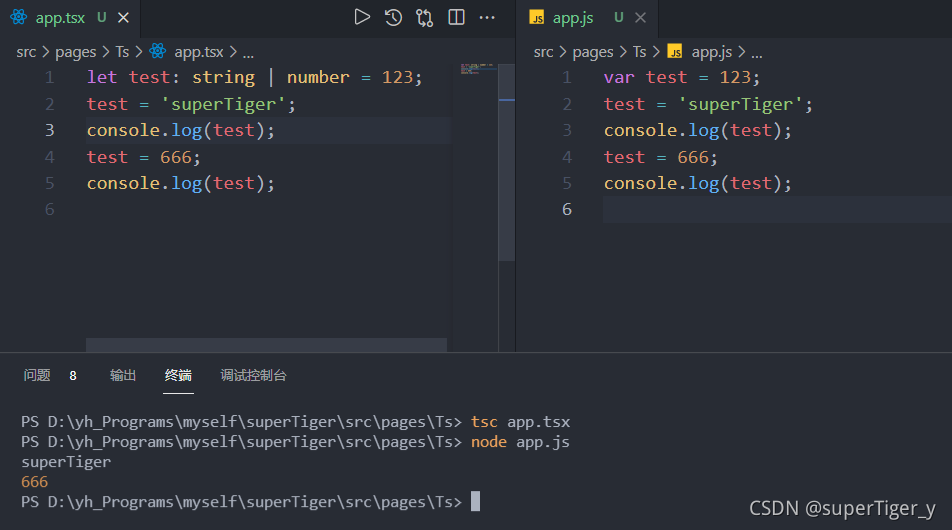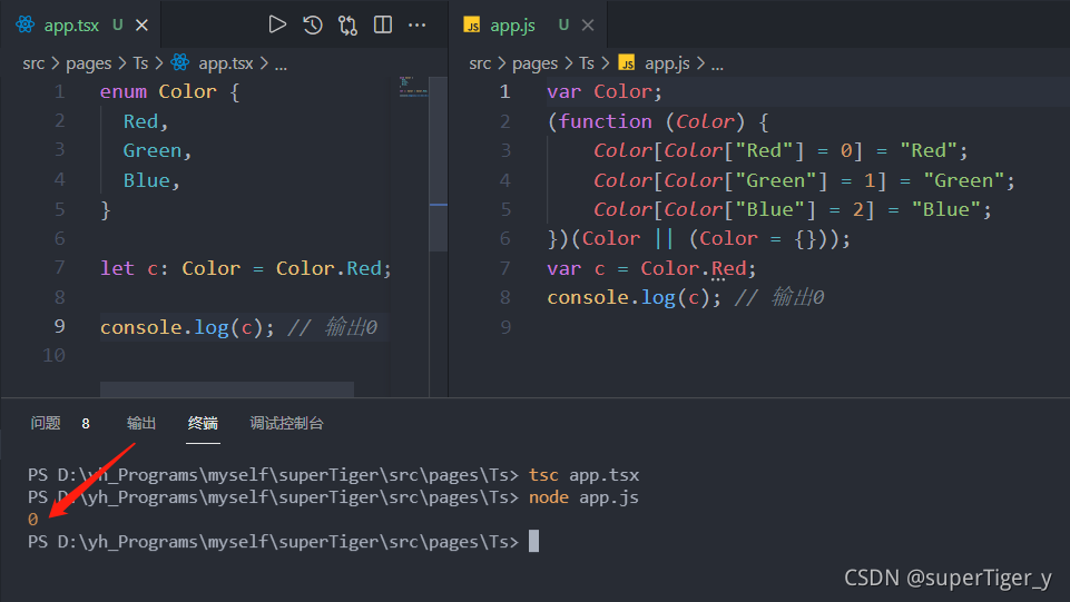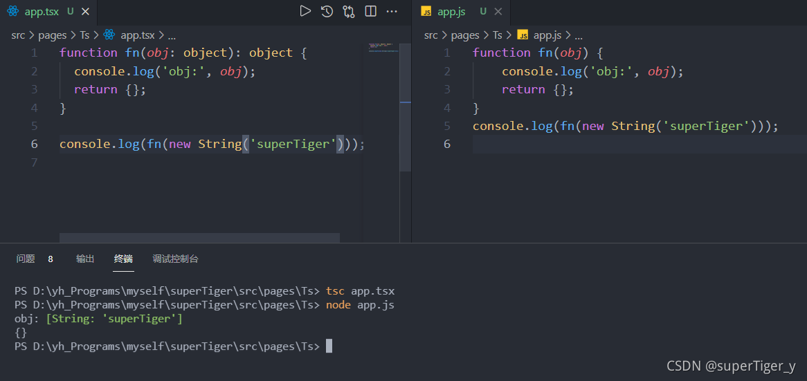 $ tsc app.ts运行上面命令之后 当前文件下就会多一个app.js文件