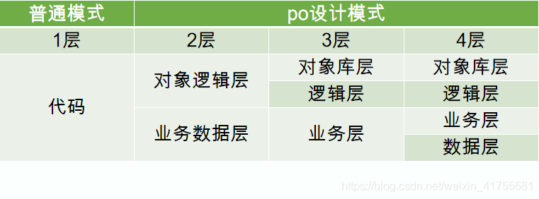 po设计模式主要用在UI自动化测试中,常用框架为unittest、pytest,通过类来分层,一般为2到4层。 这样让不同的层处理单独的逻辑,结构比较清晰,复用性好且易维护。