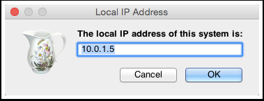 首先我们需要获取 Charles 运行所在电脑的 IP 地址,Charles 的顶部菜单的 “Help”->”Local IP Address”,即可在弹出的对话框中看到 IP 地址,如下图所示: