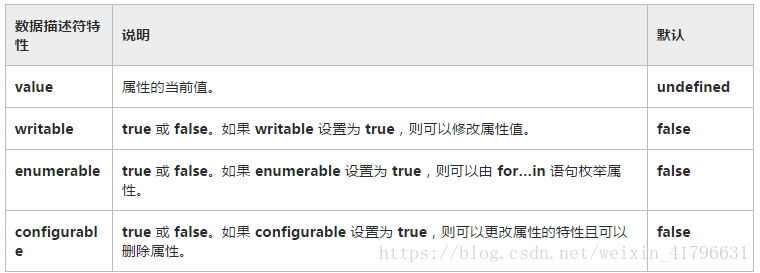 数据属性 是可获取和设置值的属性。数据属性将 value 和 writable 属性包含在其描述符中。