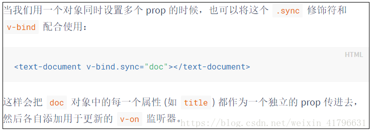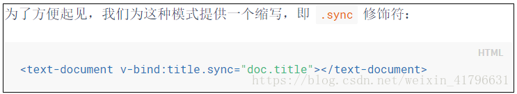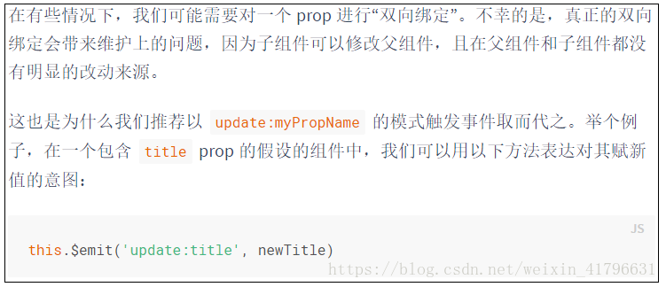 $emit(update: prop, "newPropVulue") 这个模式,使子组件向父组件传达:更新属性,并抛出新的属性值