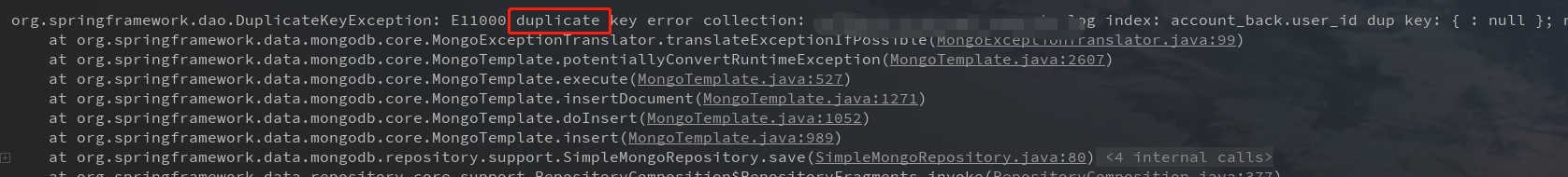 需要删除MongoDB数据库对应的唯一索引,不然会继续报这个错误