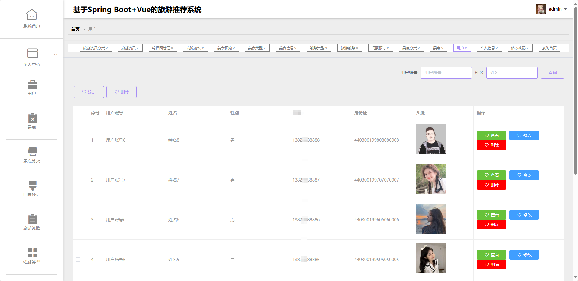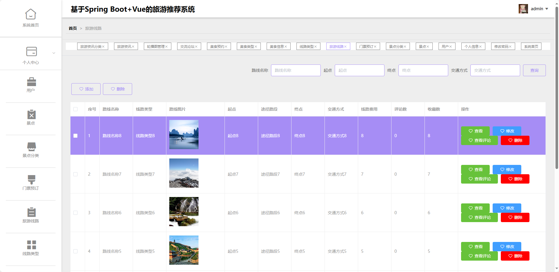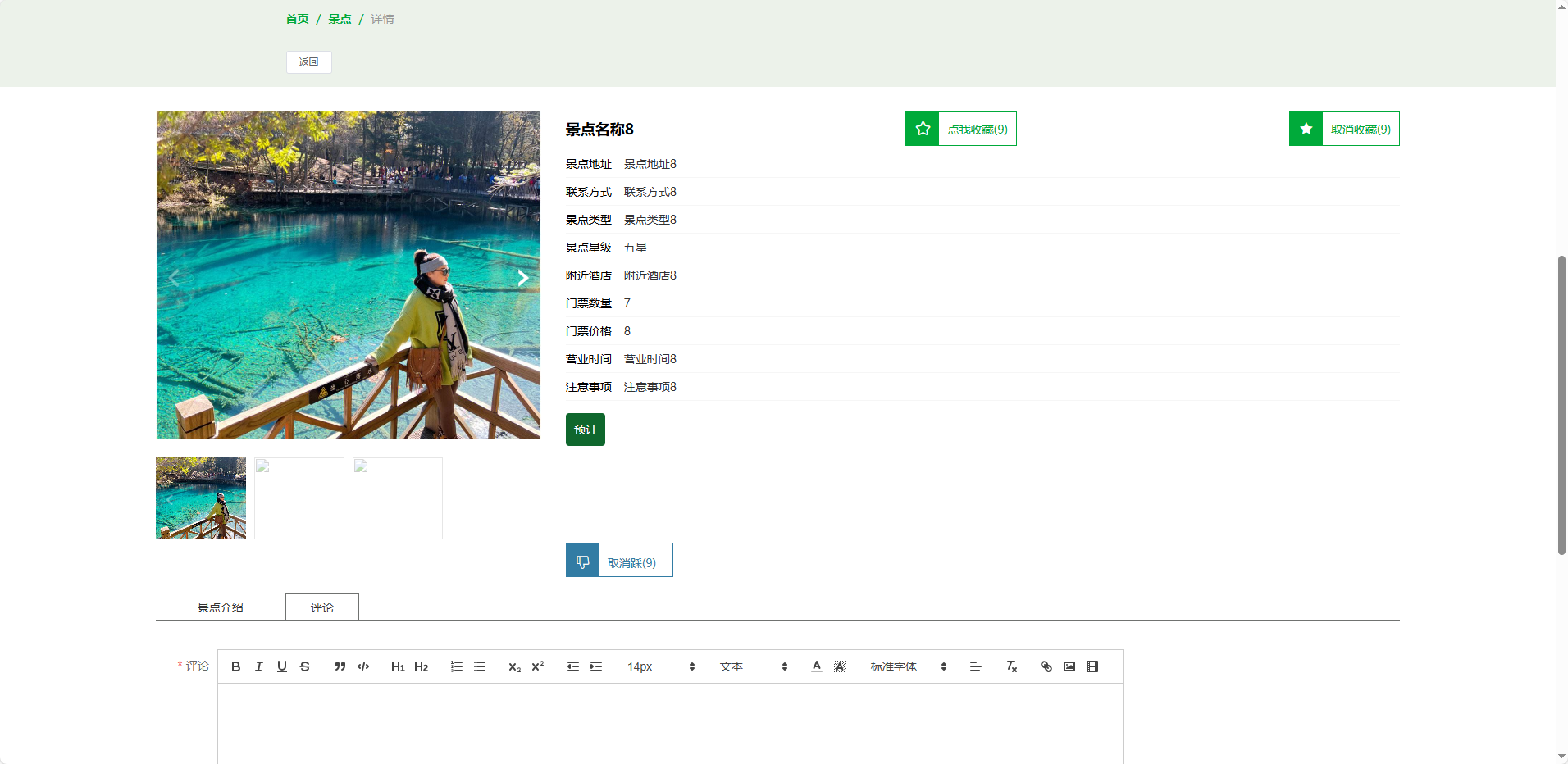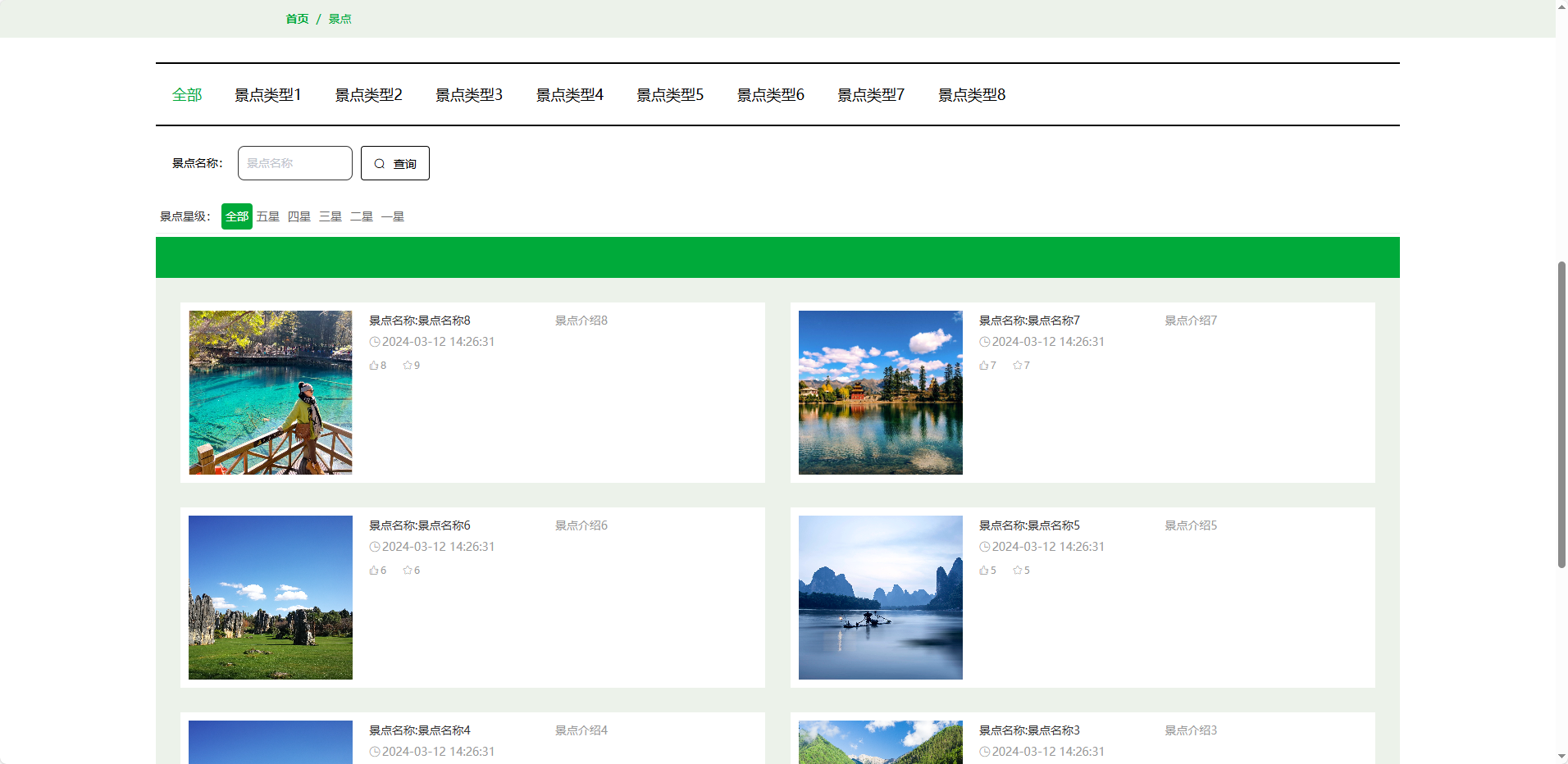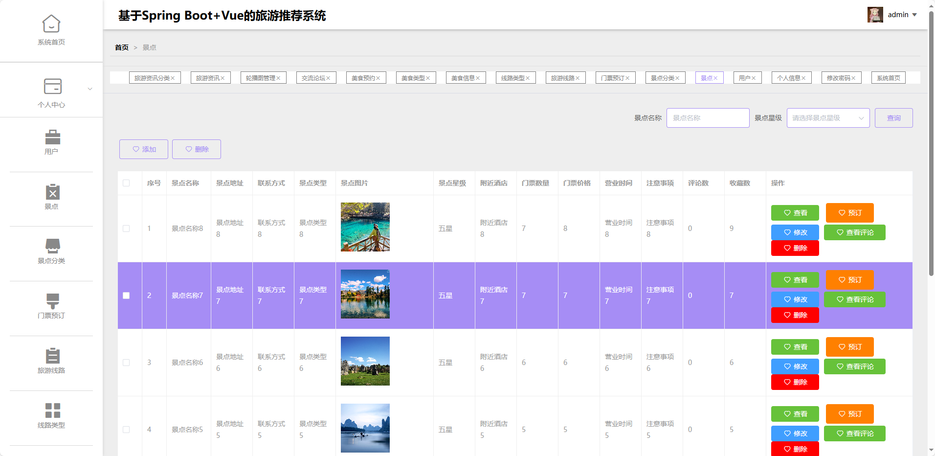 - 景点推荐:根据用户历史浏览或偏好推荐相似景点。