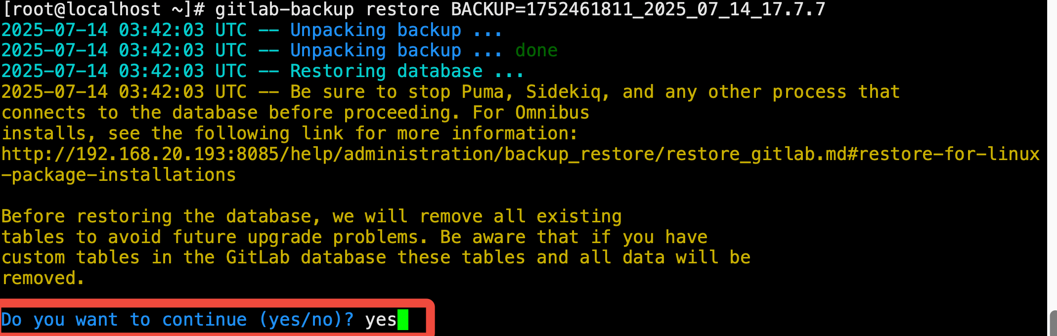gitlab-backup restore BACKUP=1752461811_2025_07_14_17.7.7