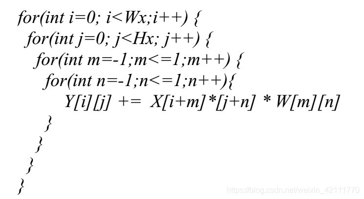 假设X为输入张量,Y为输出张量,W为权重张量,Wx和Hx为输入张量的宽和高,那么关于一个3x3的卷积运算伪代码如下所示: