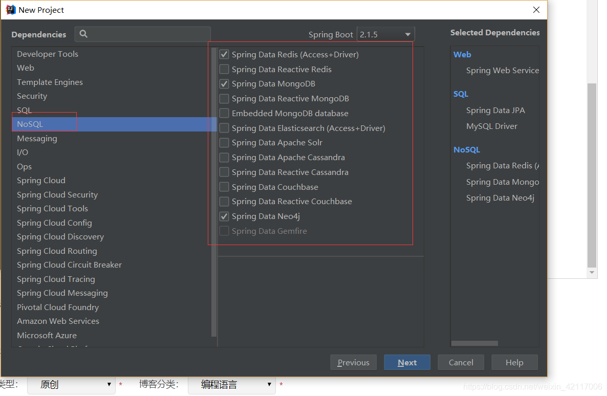 项目依赖的选择,这里可以根据你的工程所需的依赖进行勾选(使用的是maven项目管理)