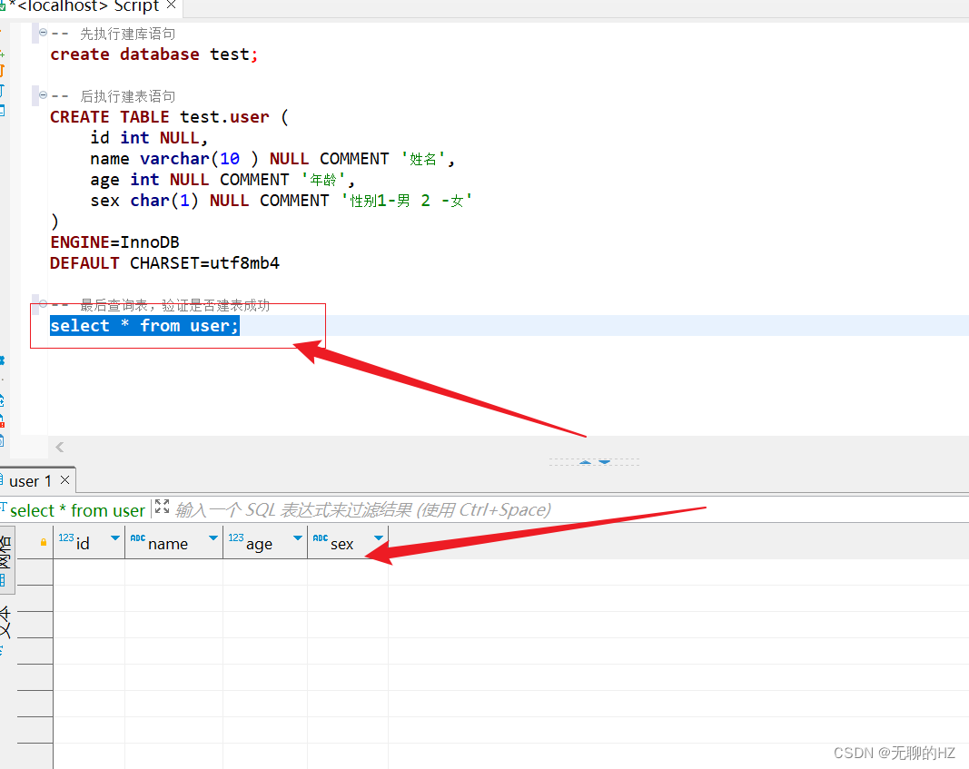 -- 后执行建表语句