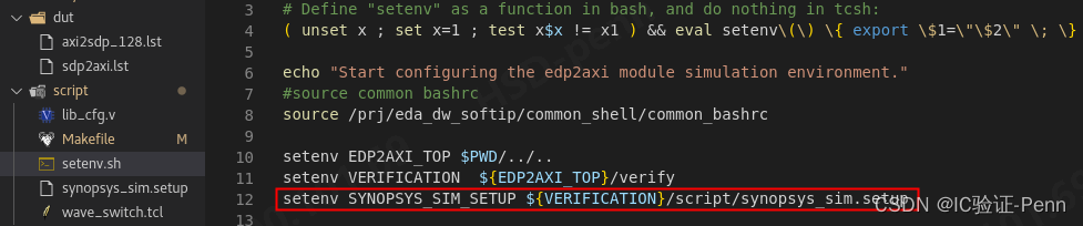 1.第一步在设置环境变量的脚本里面指定自定义的synopsys_sim.setup