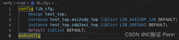 3.编写lib_cfg.v文件指明instance和lib的依赖关系