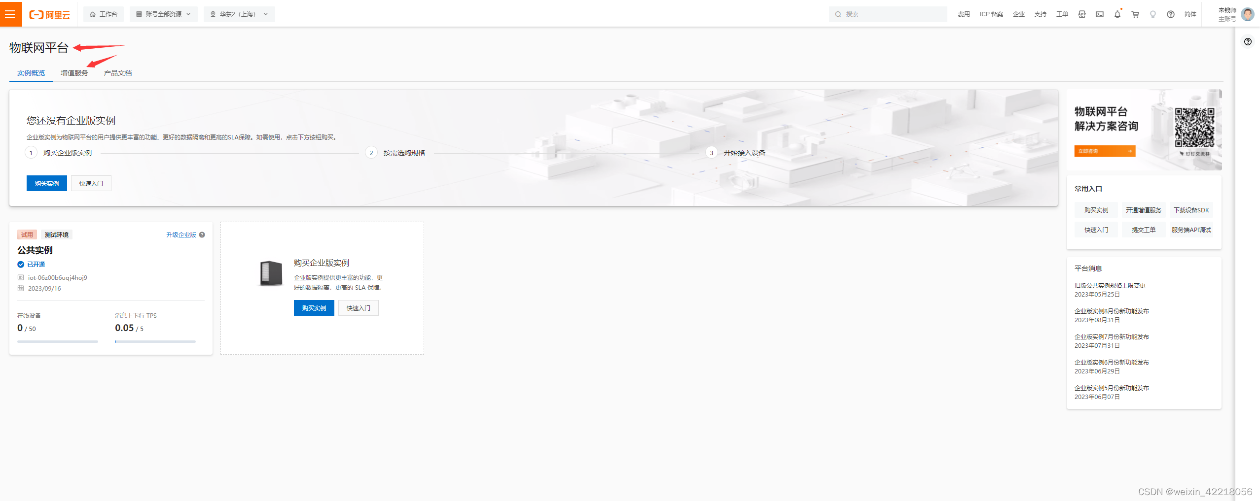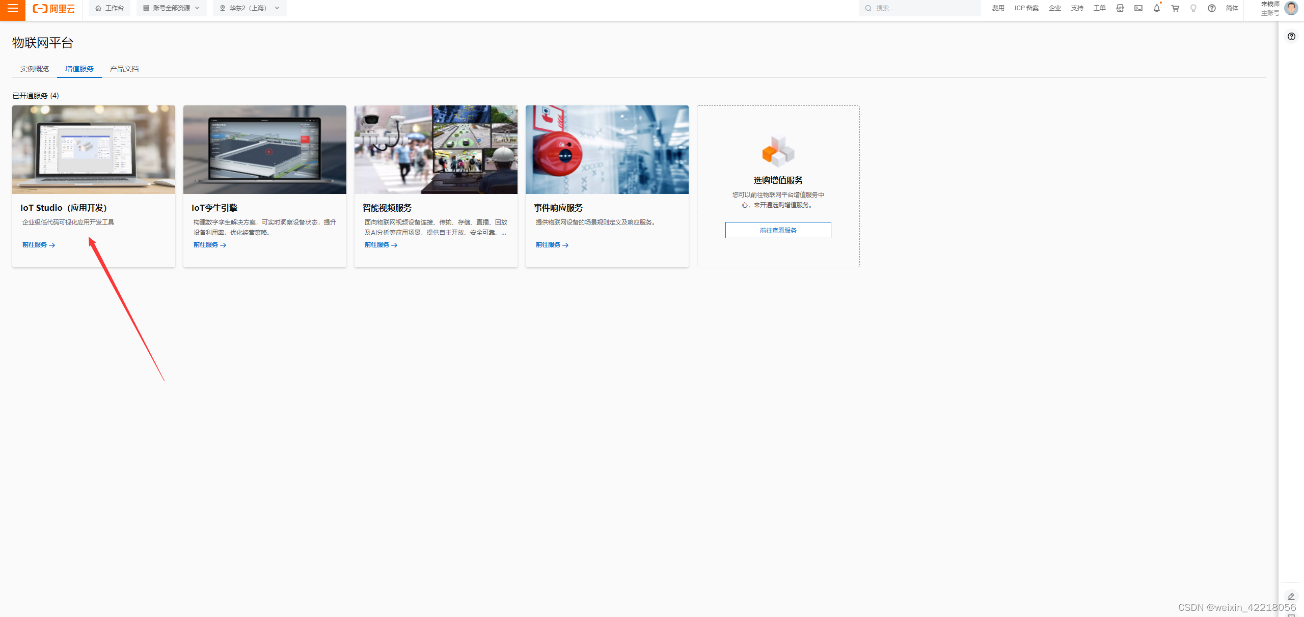 1.首先在阿里云物联网平台选择“增值服务”,
