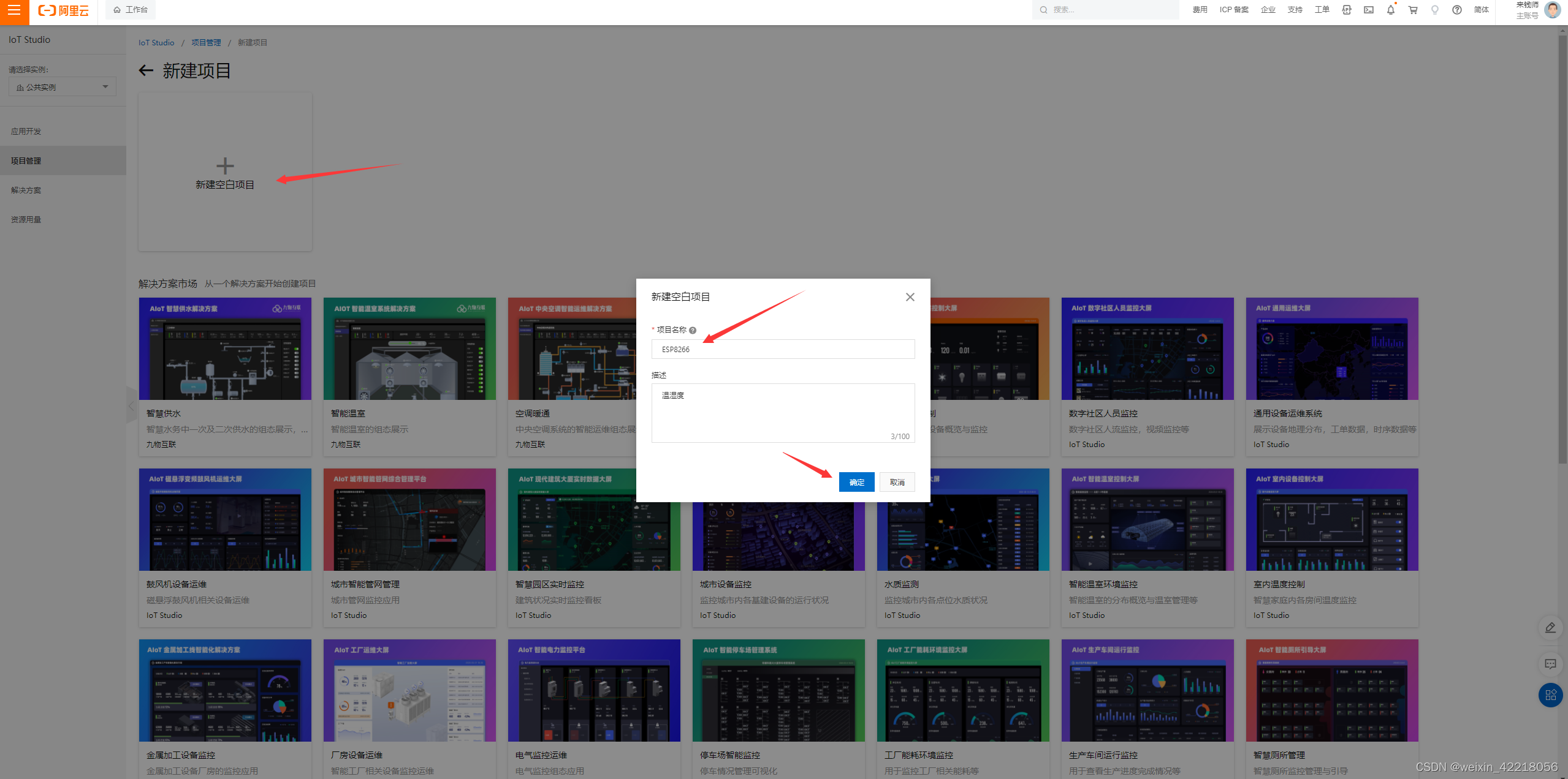 4.项目名称随便写,点击“确定”,