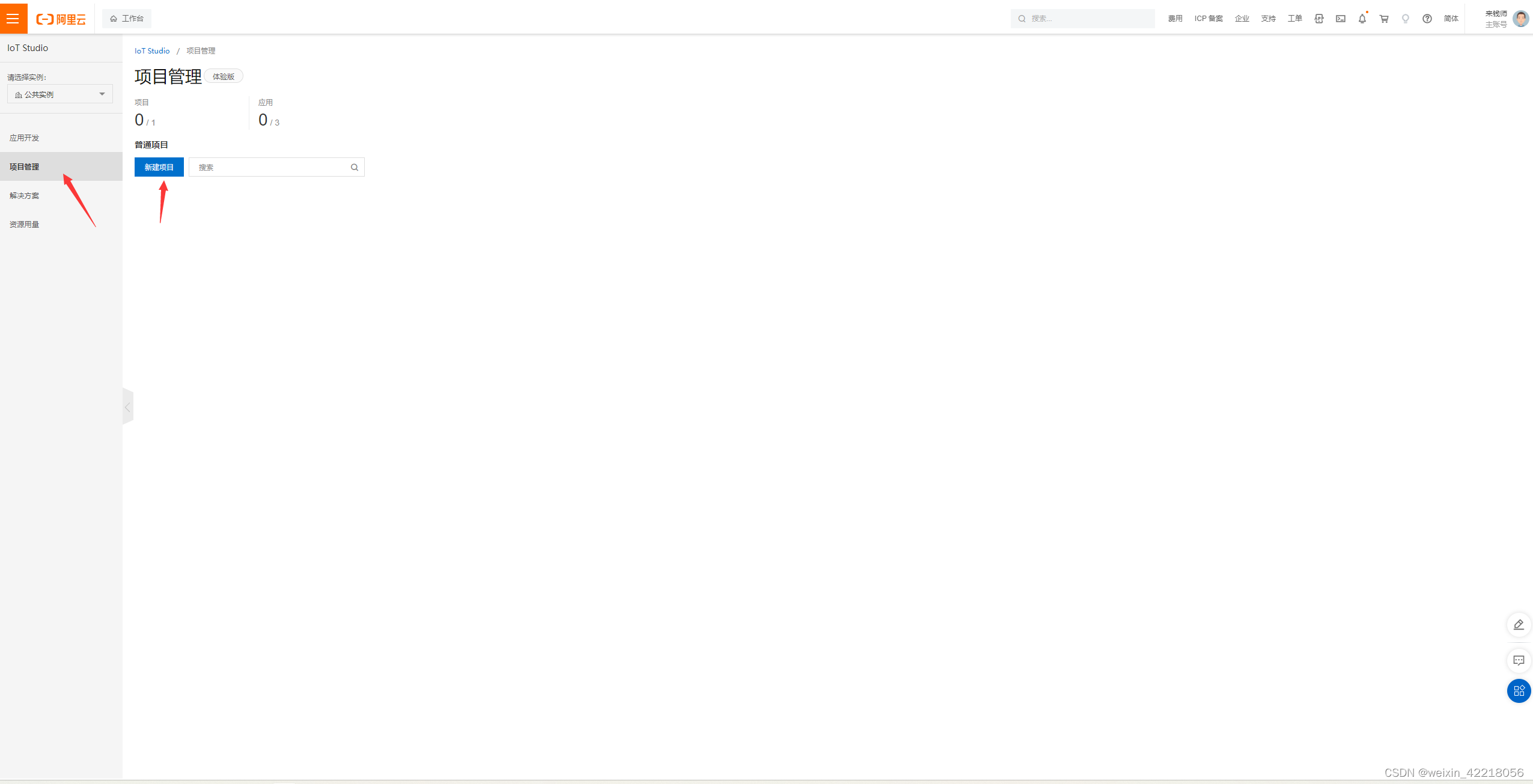 3.接下来在左侧的项目管理栏“新建项目”,