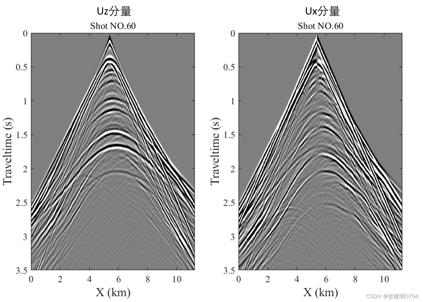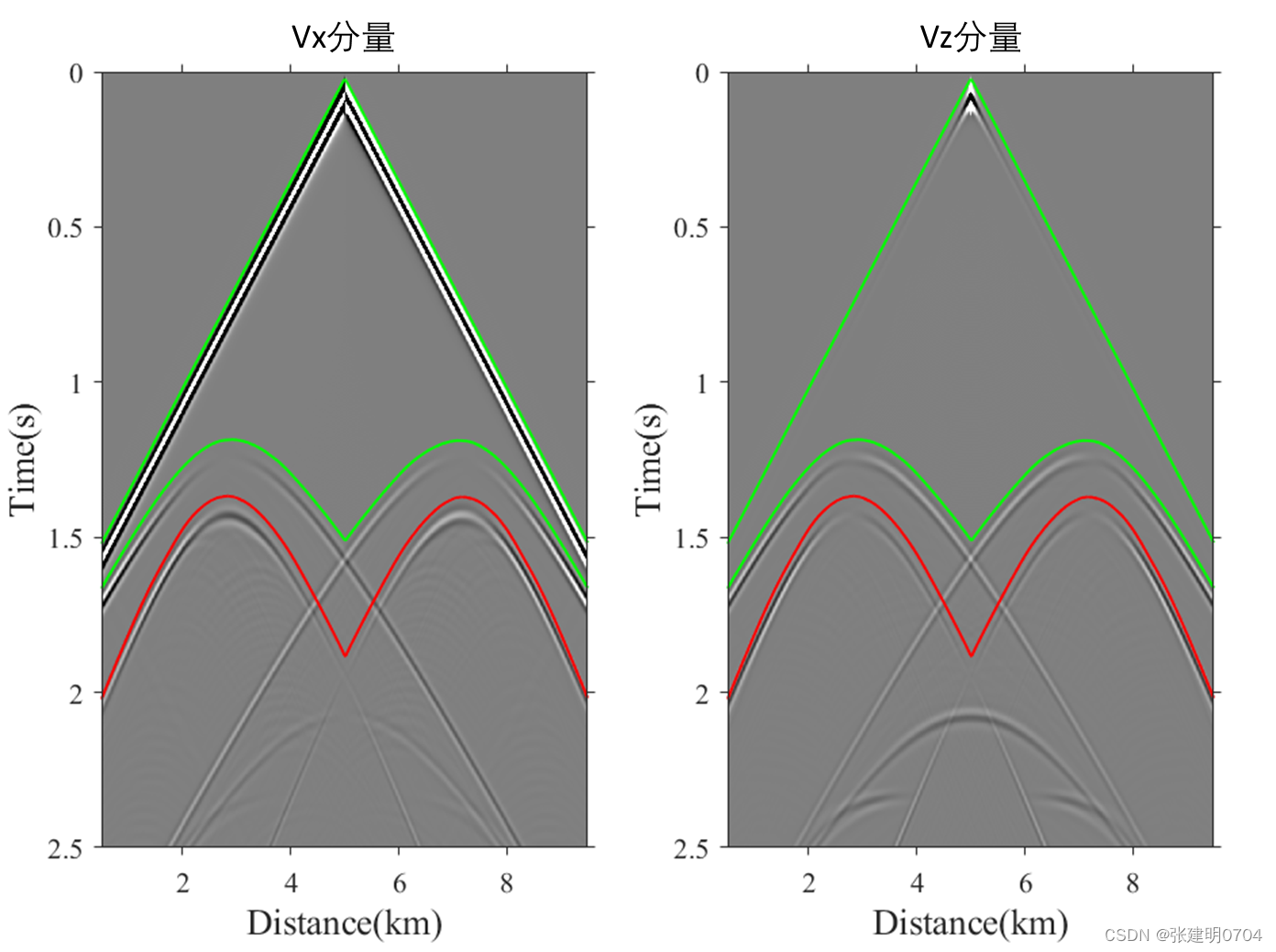 Vz上施加震源,相当于垂向重锤激发,同时产生P和S波。