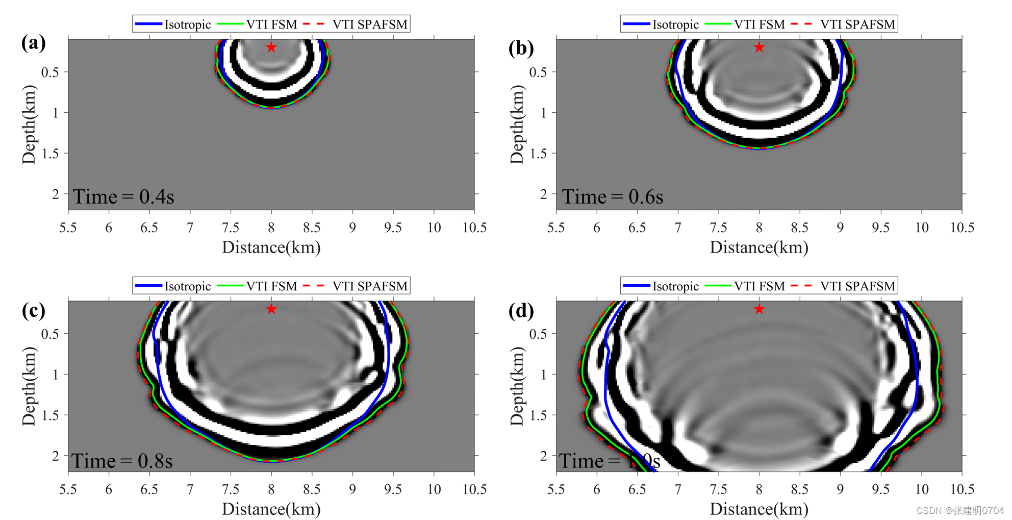 Vs, epsilon, δ都置零后,就是各向同性声波波场。