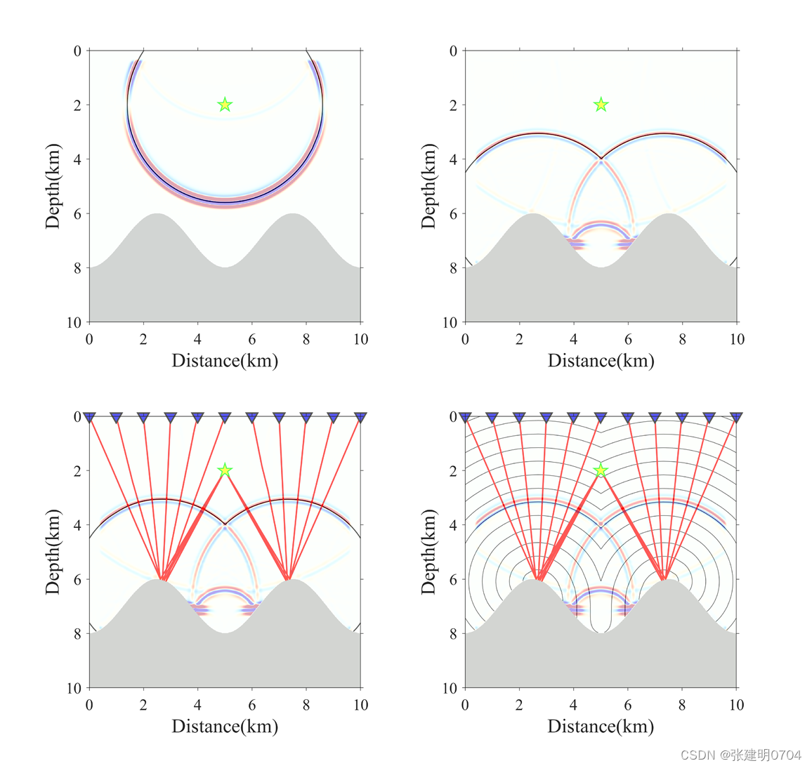 逐渐改进,从各向同性到VTI各向异性(前面的帖子有各向同性和VTI的程序,基础程序可以参考我前面的帖子),再到TTI介质,实际上只是刚度系数矩阵换了换而已。下面给出很多模拟的例子,可以参考。在这里强调几项关键问题,适用于ISO,VTI,TTI介质。