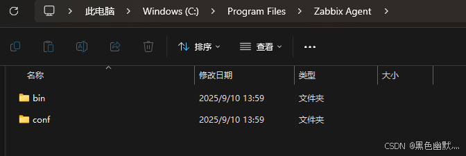 解压后会得到bin与conf两个文件夹,把他移动到 C:\Program Files\Zabbix Agent\