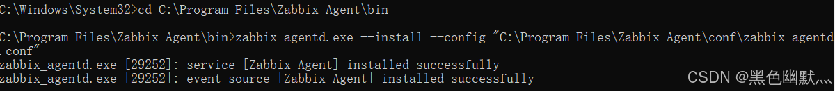 C:\Program Files\Zabbix Agent\bin>zabbix_agentd.exe --install --config "C:\Program Files\Zabbix Agent\conf\zabbix_agentd.conf"