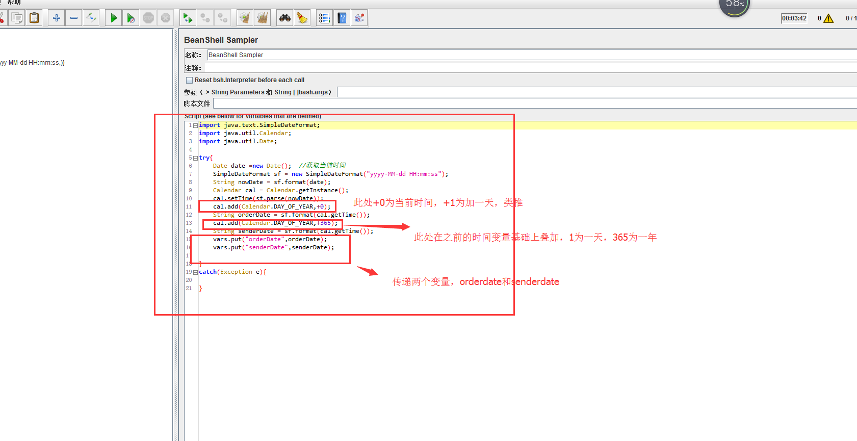 说到时间偏移,就是说我不光想打印当前时间,我还想打印明天,后台,甚至是明年的时间,那么我们要怎么去处理?这里就需要用到 BeanShell Sampler