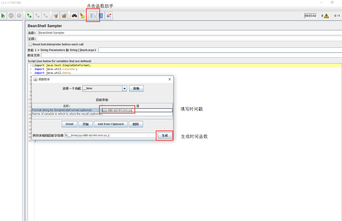 生成的函数是这样的:${__time(yyyy-MM-dd HH:mm:ss,)}