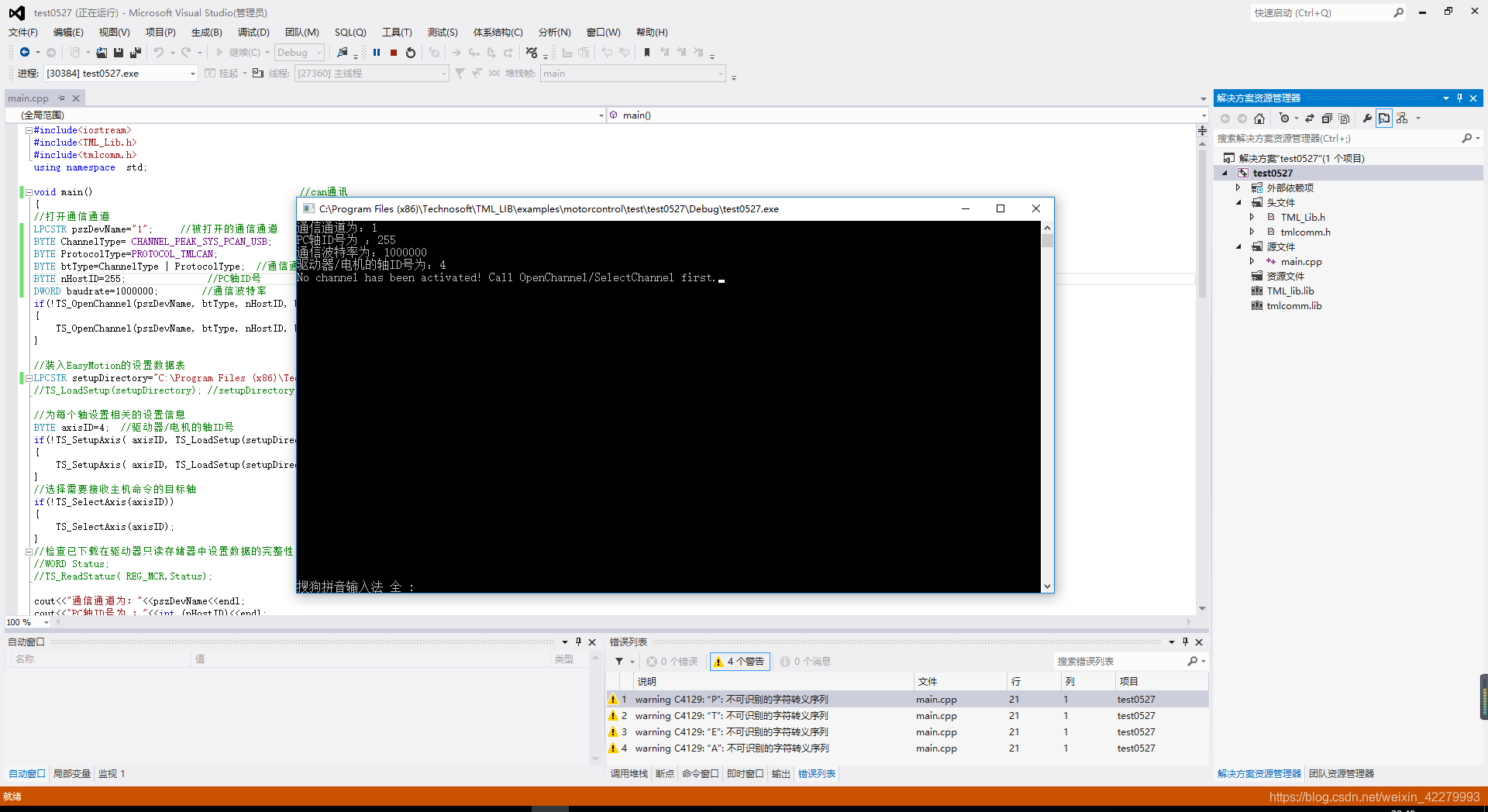 2 把程序涉及到的.dll文件放在Debug文件夹中,把.h和.lib文件放在项目根目录下