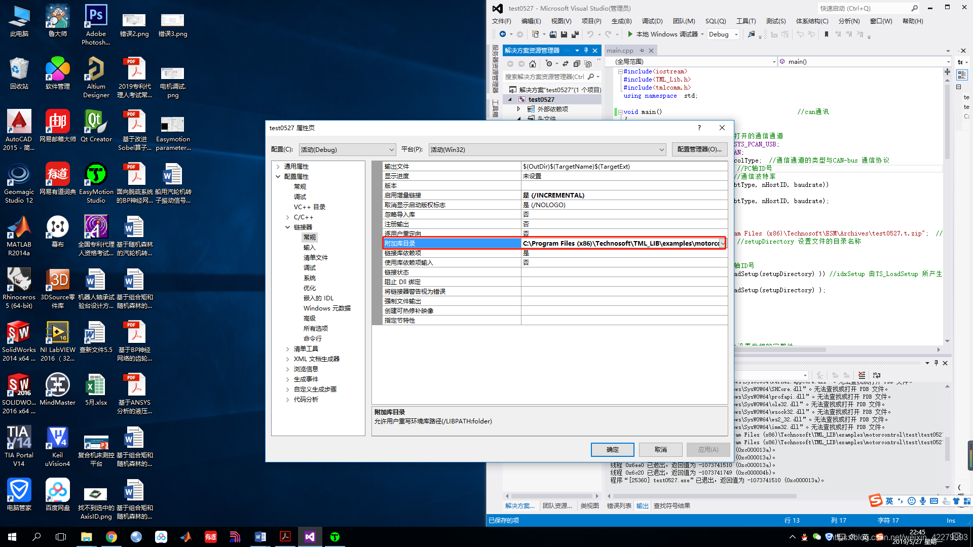 解决办法:属性->链接器->常规->附加库目录,在里面添加两个.lib文件的地址,要精确到.lib文件