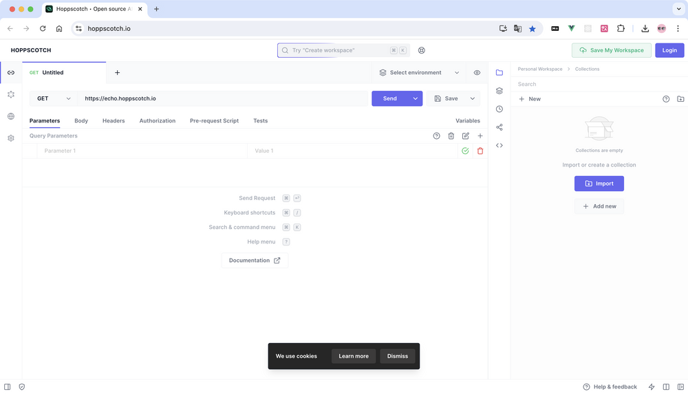 说到轻量级的 API 测试工具,就不得不提到 Hoppscotch(原名 Postwoman)。这是一个完全在线的工具,你甚至不需要下载安装任何东西,打开浏览器就能用,这一点真的太方便了。不得不提的是 Hoppscotch 是开源的,如果你有特殊需求,可以自己部署一个版本。