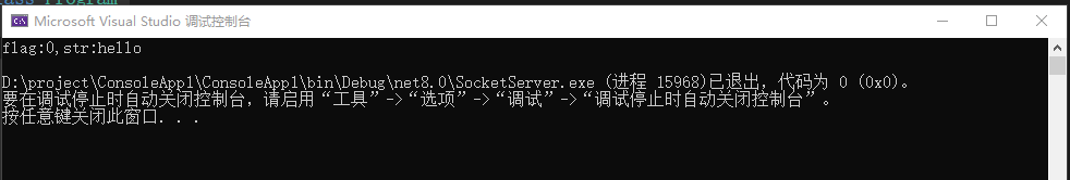 Console.WriteLine("flag:" + flag + ",str:" + str);
