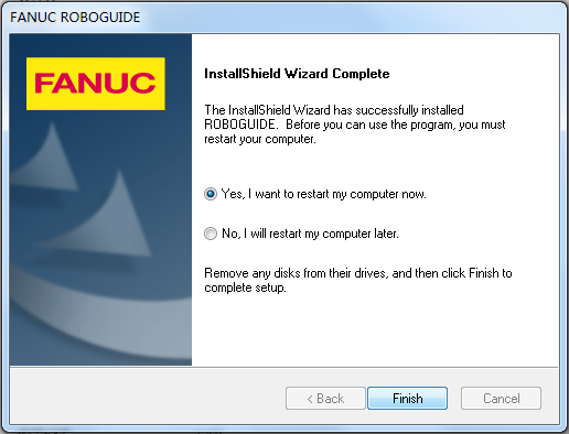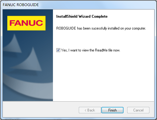 16)弹出“FANUC ROBOGUIDE – InstallShield Wizard Complete”窗口,点击“Finsh”按钮;