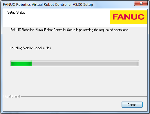 15)弹出“FANUC Robotics Virtual Robot Controller V8.30 Setup”窗口,等待安装完成;