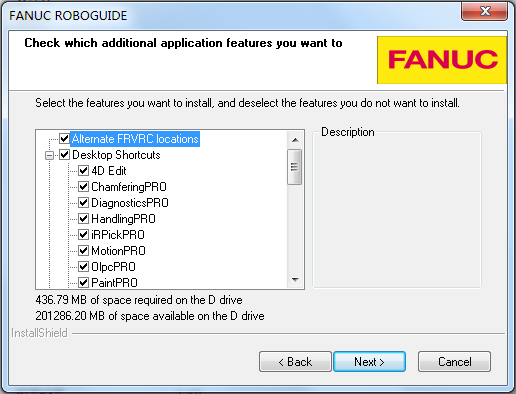 8)在“FANUC ROBOGUIDE – Check which additional application features you want to”窗口中选择要安装的附加应用,建议除“Additional Languages”以外全部勾选,然后点击“Next”按钮;;