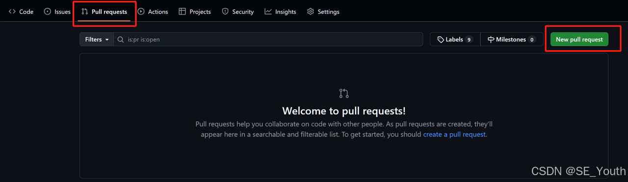 将代码 push 到远程仓库后,在 GitHub 上,可以创建一个合并请求(Pull Request,PR),请求将推送的修改合并到主分支或者其他分支。