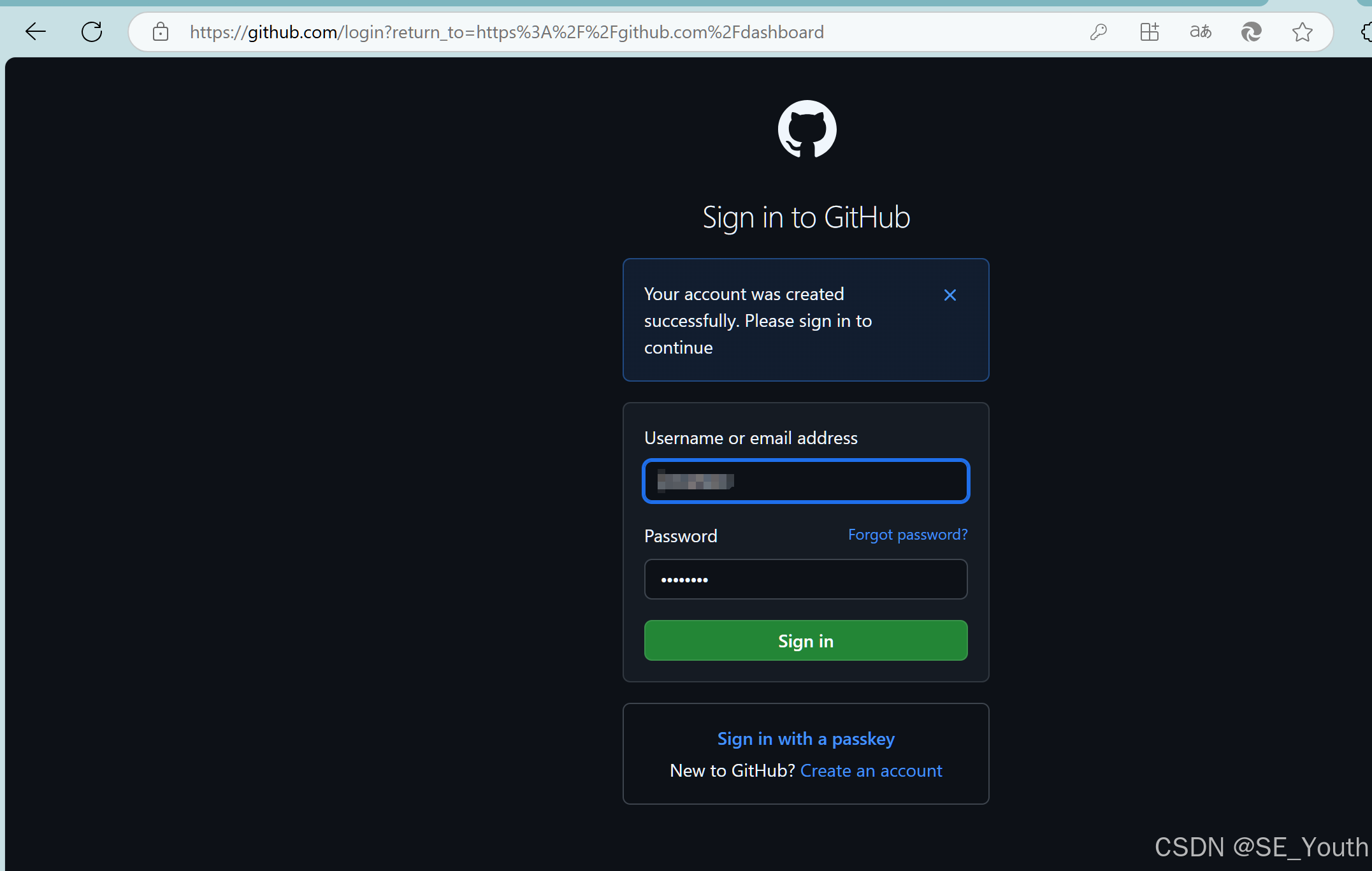 上述步骤完成后,将自动跳转到登录界面,点击“Sign in” 即可登录到 GitHub。