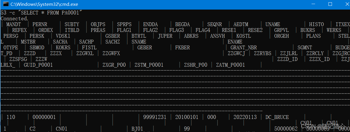 本文介绍如何使用SAPABAP1账号通过命令行工具ngdbc连接HANA数据库,该账号默认拥有所有表的权限。示例中展示了使用java环境和ngdbc.jar包执行SQL查询的步骤,从而直接从PA0001表中获取数据。