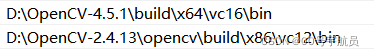- 将OpenCV.4.13的bin路径加到用户变量path里(参考的博客里一个用了x86一个用了x64我也不知道为什么那就也这么弄吧)
