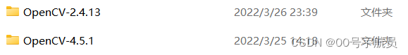 然后在D盘里就已经有了两格版本的OpenCV文件了。