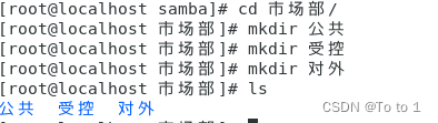 # mkdir /home/samba/市场/对外 /home/samba/市场/公共 /home/samba/市场/受控