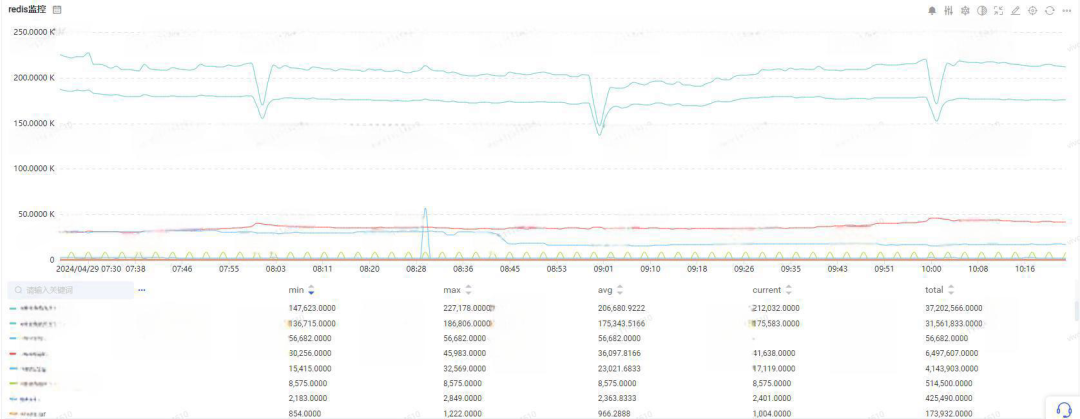 上图监控的业务维度按照某类 key 的前缀进行聚合的指标,评估各类的 Redis 的 key 的读写指标。