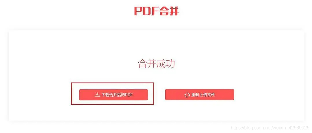pdf上传完后,点击开始合并,这个时候时候我们等待一会,当进度条到达100%后就表示合并好了。