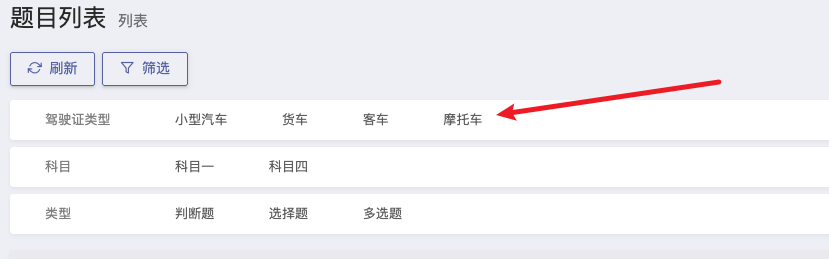 $selector->select('car_type_id', '驾驶证类型', CarType::pluck('name', 'id')->toArray(), function ($query, $value) {