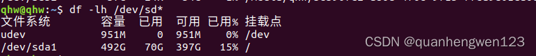 ##输入df -lh /dev/sd*命令,敲回车键